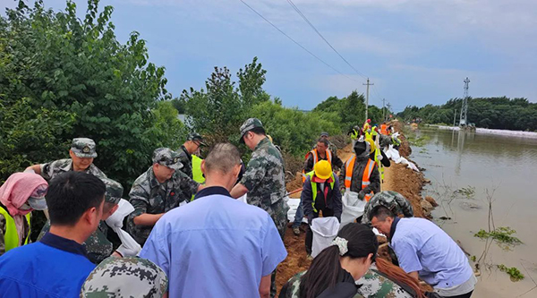 公司總經(jīng)理郭偉東在組織完車(chē)間生產(chǎn)后,購(gòu)買(mǎi)了食品、飲用水及勞動(dòng)物資赴抗洪一線慰問(wèn)。大家一鼓作氣,將堤壩加高、增厚、筑牢,把洪水堅(jiān)實(shí)地阻擋在了堤壩之下。
